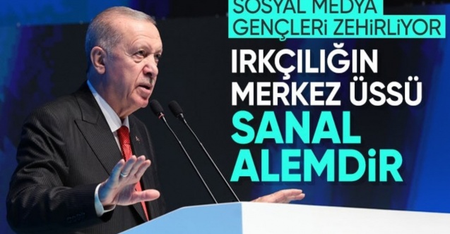 Sosyal medyanın gençleri zehirlediğinden bahseden Erdoğan, "Sosyal medyanın, birtakım oyun platformlarının gençlerimizi nasıl zehirlediğine şahit oluyoruz. Sapkın akınların özendirilmesine de aracılık ediyor. Sinsice yerleştirilmiş LGBT propagandasına maruz kalıyor. Irkçılık da körükleniyor." dedi.