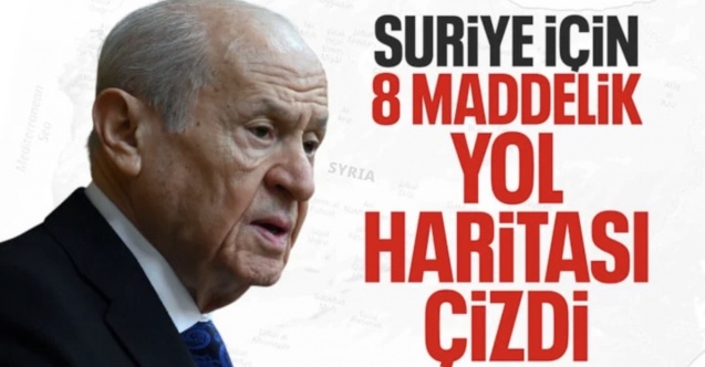 "Bize göre; yaşanan gelişmeler çerçevesinde önümüzdeki süreçte Suriye’nin barış, huzur, birlik ve bütünlüğü ile Suriyelilerin refah, temel hak ve özgürlükleri bağlamında hızla mesafe alınabilmesi için aşağıdaki yol haritasının izlenmesi yerinde olacaktır" diyen Bahçeli, Suriye için yol haritasını 8 madde de açıkladı: