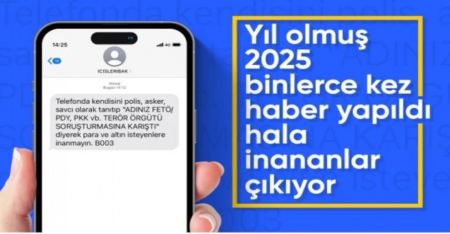 İçişleri Bakanlığı, bir türlü önüne geçilemeyen telefonda kendini güvenlik güçlerine mensup olarak tanıtıp ağlarına düşürdükleri vatandaşları dolandıran fırsatçılar için telefonlara SMS uyarısı gönderdi.