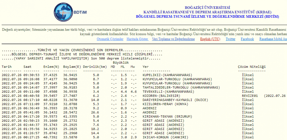 Depremin derinliği 7 kilometre olarak açıklandı.