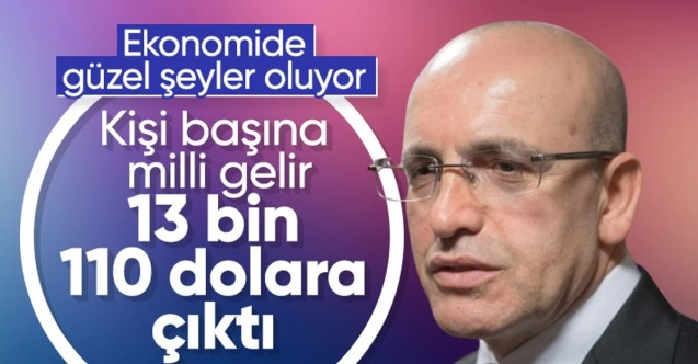 Hazine ve Maliye Bakanı Mehmet Şimşek, kişi başına düşen milli gelirin yüksek bir artışla 13 bin 110 dolara çıktığını açıkladı.