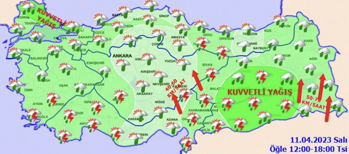 Yağışların, Doğu Akdeniz, Doğu Anadolu’nun güney ve batısı, Güneydoğu Anadolu ile Kırklareli, İstanbul, Kocaeli, Zonguldak, Bartın, Karabük ve Bolu çevrelerinde yerel kuvvetli olması beklendiğinden sel, su baskını, yıldırım, yerel küçük çaplı dolu yağışı ve yağış anında kuvvetli rüzgâr gibi olumsuzluklara karşı dikkatli ve tedbirli olunması uyarısı yapıldı. Rüzgârın, Doğu Akdeniz’in iç kesimleri, İç Anadolu’nun güneydoğusu ile Doğu Anadolu’nun güneydoğusunda güneyli yönlerden kuvvetli (40-70 km/saat) esmesi beklendiğinden yaşanabilecek olumsuzluklara karşı dikkatli ve tedbirli olunması gerektiği belirtildi. Doğu Akdeniz, Doğu Anadolu'nun güneyi ile Güneydoğu Anadolu'da toz taşınımı beklendiğinden ulaşımda aksamalar, görüş mesafesinde azalma, hava kalitesinin düşmesi, yağış alan yerlerde çamur şeklinde yağış gibi olumsuzluklara karşı dikkatli ve tedbirli olunması çağrısı yapıldı.