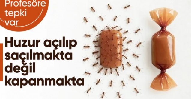 Ambalajlı ve ambalajsız iki şeklerleme motifinin yan yana, ambalajı olmayan şekerlemeye karıncaların üşüştüğü bir görsel paylaşan Tarhan, teşhir vurgusu yaptı.