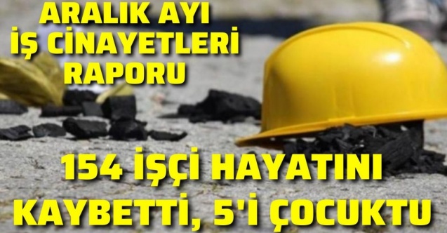 İşçi Sağlığı ve Güvenliği (İSİG) Meclisi, her ay yayınladığı iş cinayeti raporunu açıkladı. Buna göre Aralık ayında 4'ü kadın, 150'si erkek olmak üzere toplamda 154 kişi iş cinayetlerinde yaşamını yitirdi. Yaşamını yitirenler arasında 5 çocuk, 6 mülteci de bulunuyor.