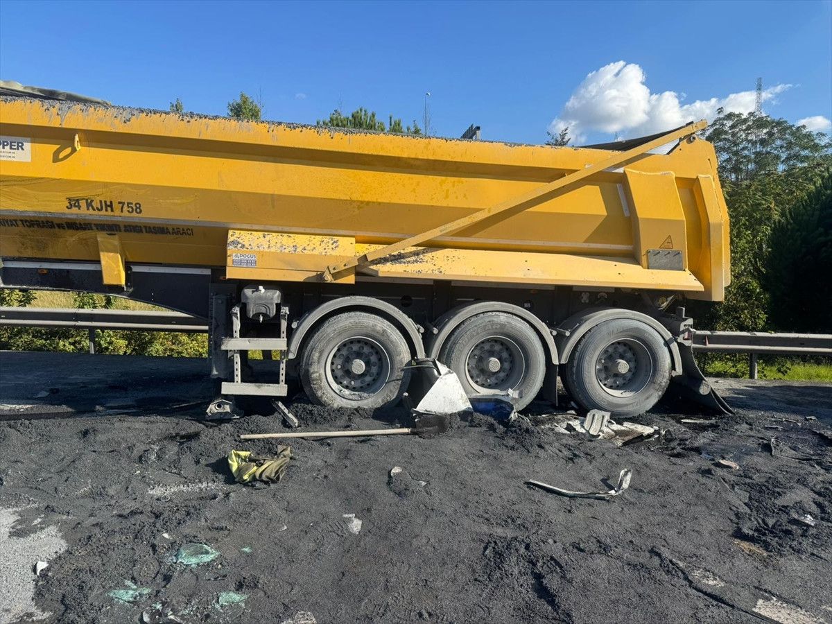TEM Otoyolu Edirne istikametinde, aralarında hafriyat kamyonu ve 2 otobüsün de karıştığı bir kaza meydana geldi.