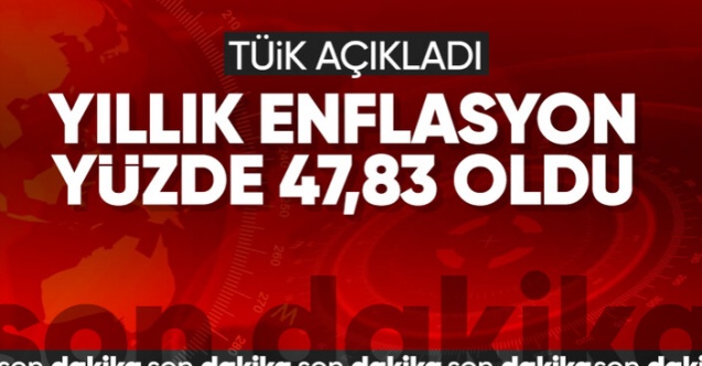 TÜİK verilerine göre enflasyon yıllık bazda ise yüzde 47,83'e yükseldi.