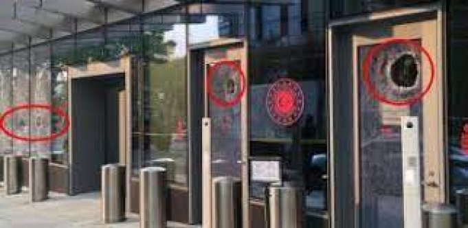 Saat 03.14'te kimliği bilinmeyen bir kişi, elinde demir levyeyle binanın alt katındaki bazı camları kırdı. New York Polisi'yle temasa geçildi. Türkevi'nin etrafına güvenlik şeridi çeken New York Polisi, olaya ilişkin soruşturma başlattı.