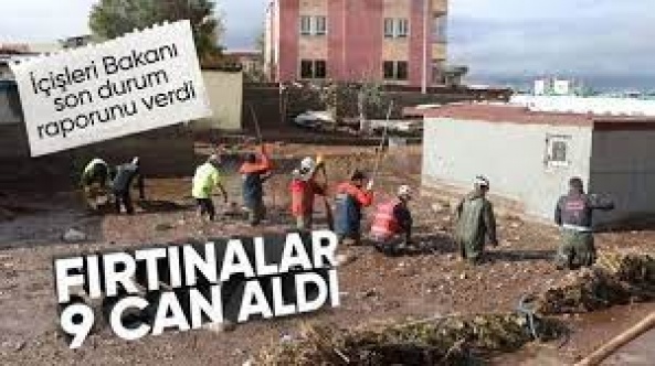 İçişleri Bakanı Ali Yerlikaya, Türkiye geneline yaşanan sel ve fırtına felaketlerinde 9 kişinin hayatını kaybettiğini, kaybolan 11 denizcinin bulunması için ise çalışmaların sürdüğünü açıkladı.