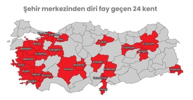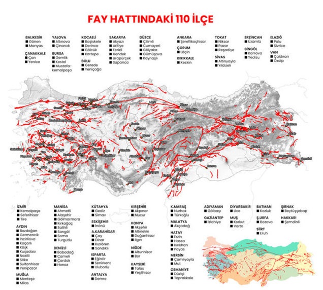 45 İL ALANINDA FAY HATTINDAKİ 110 İLÇE