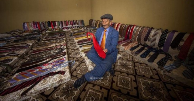 Van'ın Gürpınar ilçesinde adının verildiği mezrada oturan 70 yaşındaki Bedir Akbulut, 63 yılda biriktirdiği 1500 kravatı hayatının ayrılmaz bir parçası haline getirdi.