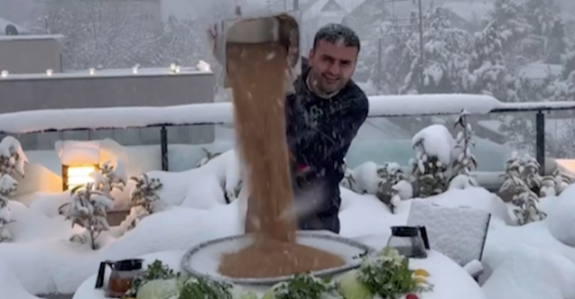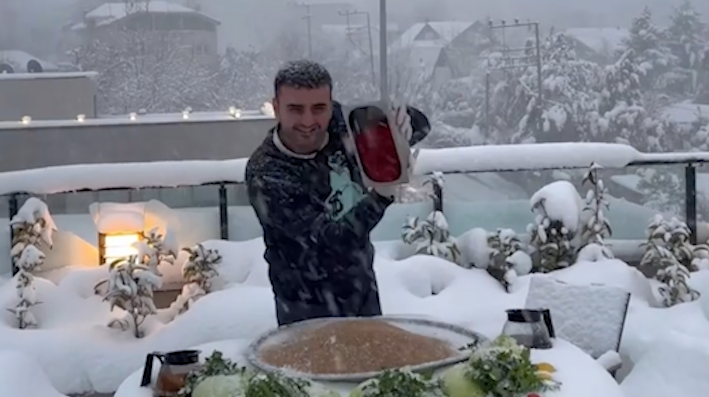CZN Burak, kar ortasında çiğköfte şovu yaptı!