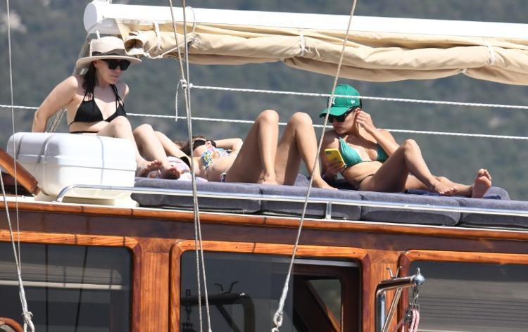 Abla-kardeş, arkadaş grubuyla kiraladıkları lüks gulet teknede görüntülendi. Erçel, Orak Adası’na demirledikleri tekneden denize girdi.