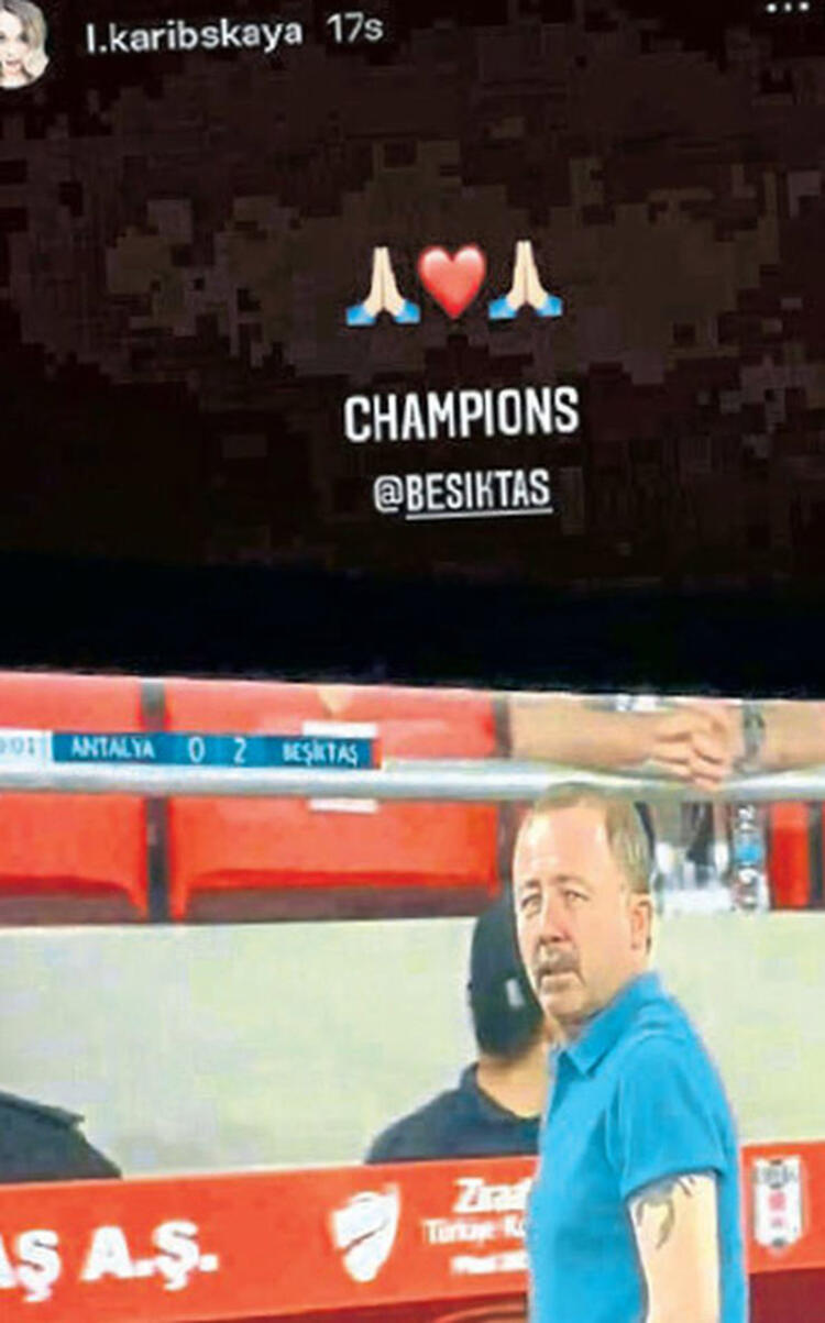 Lisaveti Karibskaya, Süper Lig ve Türkiye Kupası şampiyonluğu ile teknik direktör olarak da Beşiktaş Kulübü'nün tarihine geçen sevgilisi Sergen Yalçın'ı, böyle tebrik etti.