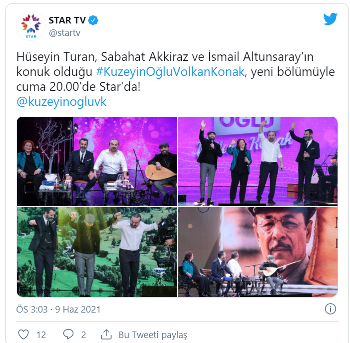 Yapımcılığını Poll Production ve Global Medya'nın üstlendiği Kuzeyin Oğlu Volkan Konak her hafta müzik dünyasından pek çok ismi konuk ediyor. Takipçileri tarafından ilgiyle izlenen Kuzeyin Oğlu Volkan Konak'ın 11 Haziran konuğu Hüseyin Turan, Sabahat Akkiraz ve İsmail Altunsaray olacak.