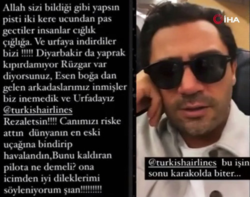 Uçağın içinde bulunan yolcuların pisti pas geçerken çok korktuğunu paylaşan İpek, "Allah sizi bildiği gibi yapsın. Pisti iki kere ucundan pas geçtiler. İnsanlar çığlık çığlığa ve Şanlıurfa'ya indirdiler bizi. Diyarbakır'da yaprak kımıldamıyor. Rüzgar var diyorsunuz, Esenboğa'dan giden arkadaşlarımız bizden önce inmişler bile. Biz inemedik ve Urfa'dayız Türk Hava Yolları" ifadelerini kullandı