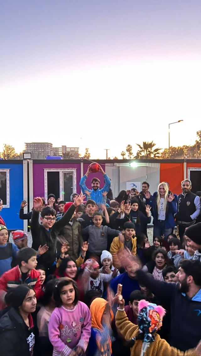 Sefo ve Aleyna Tilki, depremzede çocuklarla oyun oynayıp şarkı söyledi