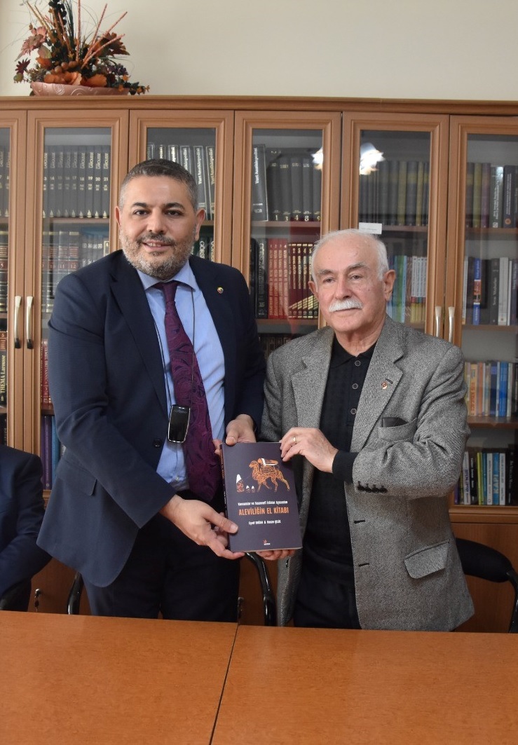 CEM Vakfı Malatya Şubesi Başkanı Eşref Doğan, ziyaret anısına kaleme aldığı “Aleviliğin El Kitabı” isimli kitabını Başkan Sadıkoğlu’na imzalayarak hediye etti.