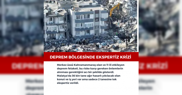Merkez üssü Kahramanmaraş olan ve 11 ili etkileyen deprem felaketi, bu riske karşı gereken önlemlerin alınması gerektiğini acı bir şekilde gösterdi. Malatya’da 36 bin tane ağır hasarlı yıkılacak olan konut ve iş yeri var ama sadece 2 tanesine tek ekspertiz verildi.