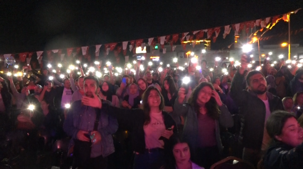 Konsere katılan vatandaşlar, telefon ışıklarını açarak türkülere eşlik edip eğlendiler.