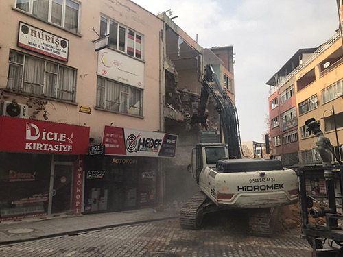 Malatya Valiliğinin yıkım kararının ardından bina çevresinde yoğun güvenlik önlemi alındı. Ekipler, binanın yıkımını kontrollü bir şekilde gerçekleştirdi. Yıkım esnasında emniyet ekipleri, yolu hem araç hem de yaya trafiğine kapattı.