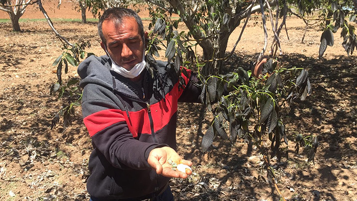 Yeniköy Mahallesi’nde çiftçilik yapan Ercan Pekcan ise yıllardır çiftçilik yaptığını ve böyle bir afet görmediğini dile getirerek, “150 ceviz ağacım dondan zarar gördü. Bırakın ceviz ürünü almayı ağaçlarımız kurumadan kurtulursa iyi. 200 kök kayısı ağacım da öyle” şeklinde konuştu. Pekcan, mahalledeki tüm çiftçilerin ağaçlarının don olayından etkilendiğini ileri sürerek, “Bölgemiz don afet kapsamına alınmalıdır. İnşallah devlet büyüklerimiz bu afeti görür ve bölge halkının çiftçiliği sürdürülür hale gelir” diye konuştu.