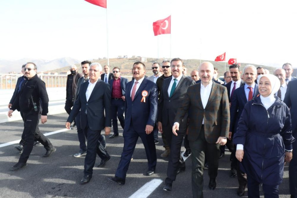 Konuşmaların ardından Bakan Karaismailoğlu ve protokol üyeleri, yolun açılış kurdelesini kesti.