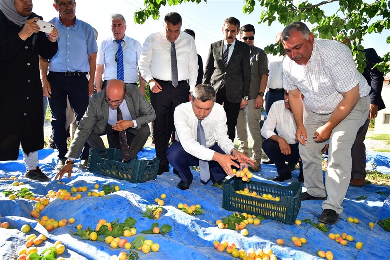 Vali Hulusi Şahin, Avrupa Birliği Coğrafi İşaret belgesi ile sofraların ve tezgâhların vazgeçilmez ürünü olan Malatya kayısısında hasat yapılan bir bahçeyi ziyaret ederek çalışmaları inceledi.