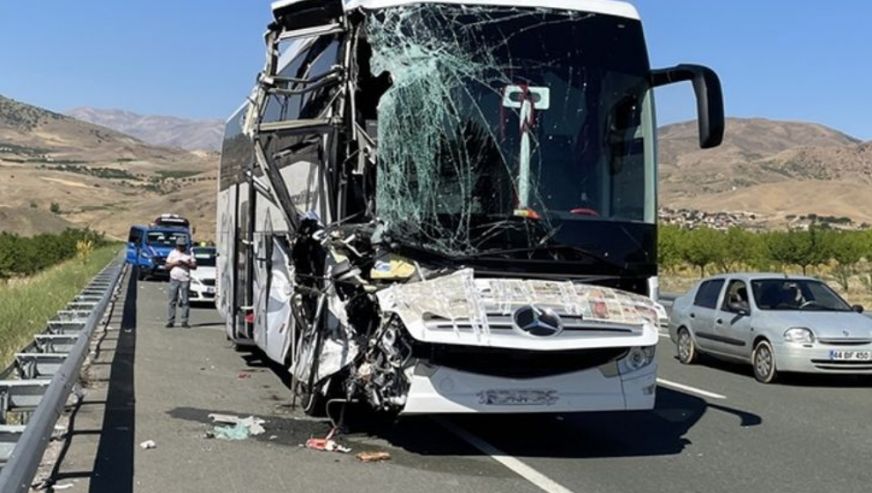 M.İ. (64) idaresindeki 62 AR 666 plakalı yolcu otobüsü, Malatya-Elazığ kara yolu Battalgazi ilçesi Merdivenler Mahallesi mevkisinde, M.Ö. (56) yönetimindeki 44 ACE 348 plaka kargo kamyonuyla çarpıştı.