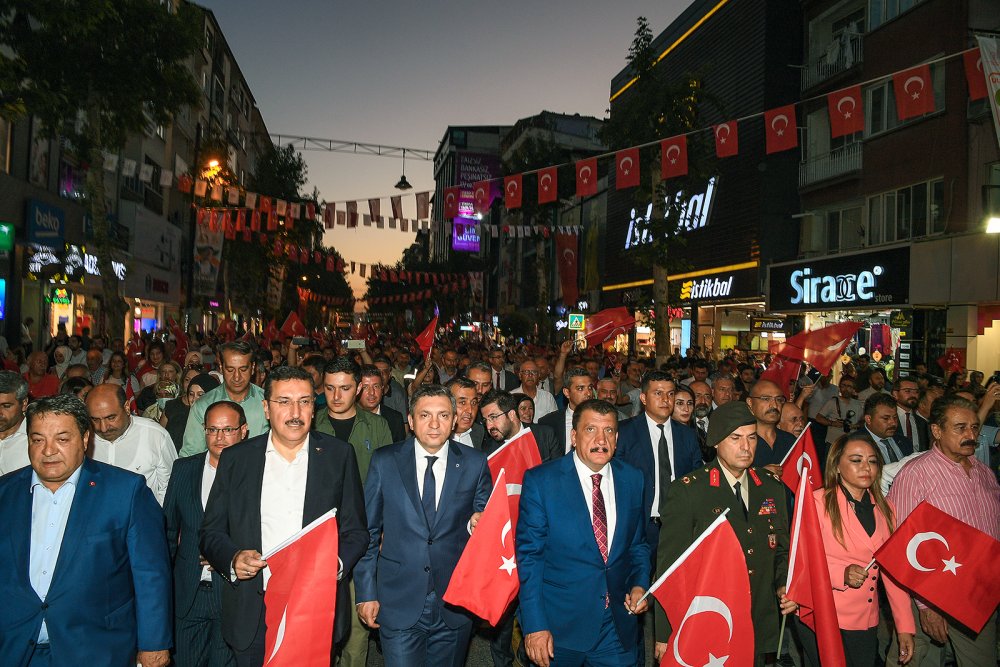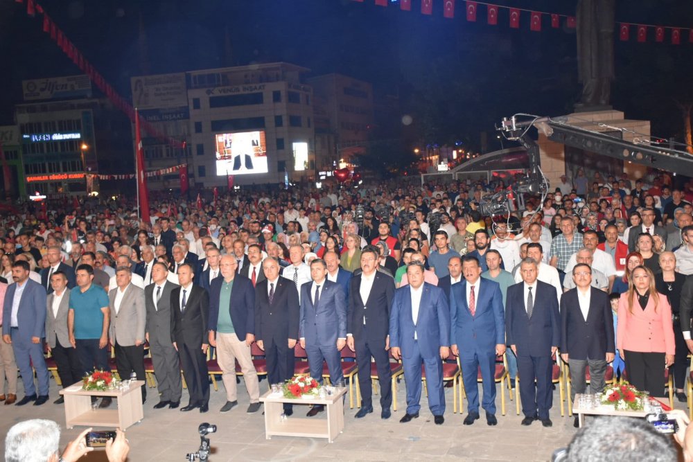 15 Temmuz sürecinde Türk Ordusunun Kahraman fertlerinin başarısından bahseden Vali Şahin sözlerini şöyle sürdürdü; ”O gece kahraman vatan evlatları, Türk Ordusu’nun kahraman mensupları ile beraber hainleri bertaraf ettiler. Türk Ordusu, Türk Milletinin en kıymetli varlığıdır. O gün eğer 15 Temmuz’daki o hain işgal girişimi, iç savaş provası başarıya ulaşmadıysa, milletinin yanında işgalcilere, darbecilere karşı duran Türk Ordusunun kahraman evlatları sayesindedir. Onları sesleri çıkmıyor. Onlar her biri birer sessiz kahraman. Nitekim bu kadar büyük travma tik bir hadiseden sonra çok kısa bir süre sonra, Türk Ordusu ayağındaki prangaları kopardığı için milletimizin ihtiyacı olan, devletimizin bekası için elzem olan operasyonları birer birer büyük başarıyla yaptı. Fırat Kalkanı ’nı yaptı, Zeytin Dalı’nı yaptı, Barış Pınarı’nı yaptı, Pençe Kilit Operasyonları yaptı. Halen de yapmaya devam ediyor. Hepsi de Malatya merkezli 2.Ordu’nun eseridir. Bunların tamamı Türk Ordusunun içerisindeki cerahatin temizlenmesi neticesinde ordumuzun yerli ve milli dava için mücadele eder hale gelmesi sayesinde oldu. Türkiye Cumhuriyeti Ordusu ile Polisi ile Adliyesi ile Mülki İdaresi ile içindeki hainleri temizledikten sonra 15 Temmuz gününden sonra, 16 Temmuz gününde çok daha güçlü olmuştur. Artık Türkiye mili duruşuyla, kendi mili menfaatleri doğrultusunda, mavi vatandan Karadeniz’deki menfaatlerine kadar her konuda dik duran dirayetli bir devlettir. Cumhurbaşkanımızın liderliğinde bundan sonra da emin adımlarla ilerleyecektir. Yeter ki birliğimizi, beraberliğimizi muhafaza edelim. Rahmetli Turgut Özal’ın ifadesiyle 21.asır, Türk Asrı olacaktır. Yeter ki birliğimizi bozmayalım. Bu meydanı dolduran kıymetli Malatyalı hemşerilerime, kardeşlerime en kalbi duygularımı sunuyorum.”