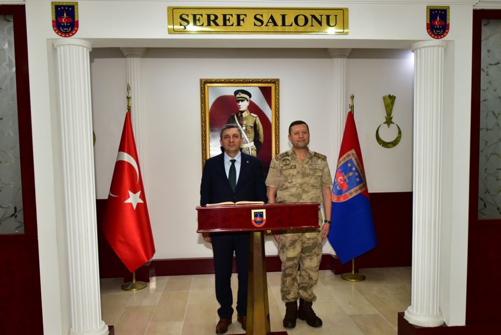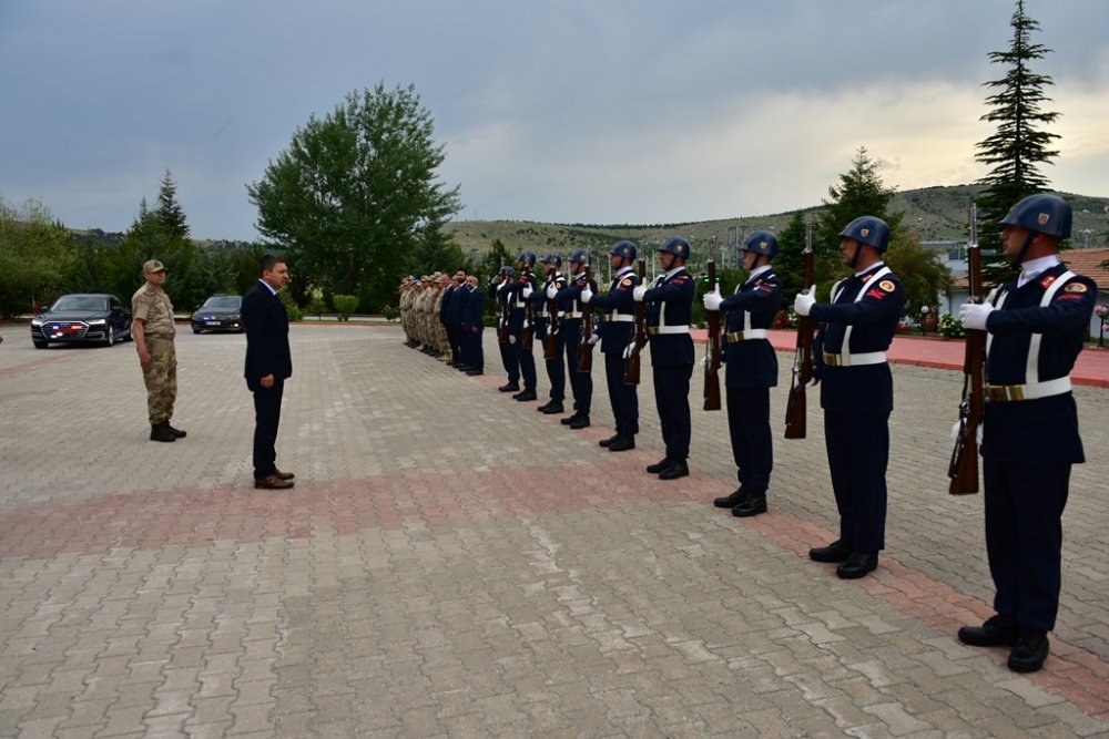 İl Jandarma Komutanlığını da ziyaret eden Vali Şahin, İl Jandarma Komutanlığı önünde İl Jandarma Komutanı J. Albay Ercan Altın ve Şube Komutanları tarafından karşılandı.