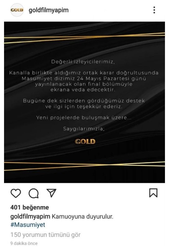 Başta 13. Bölümde final kararı alındı ancak daha sonra diziye bir şans daha verilmişti. Gold Film'in sosyal medya hesabın'dan yaptığı açıklamayla dizinin final tarihi belli oldu.