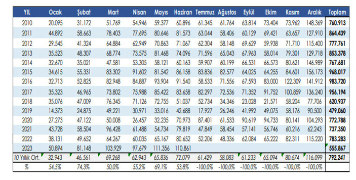 10 yıllık haziran ayı ortalama satışlarına göre artış oranı
