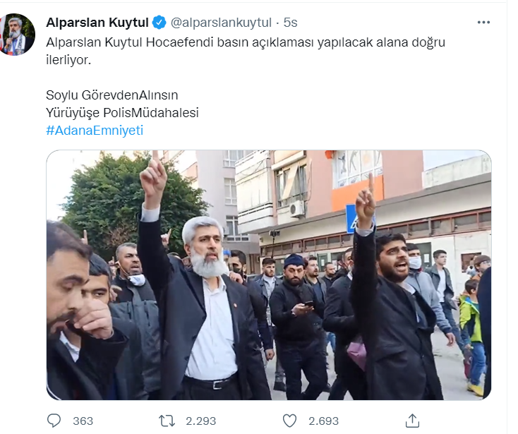 Darbe girişimlerine hayırlı olsun diyen vakfın yaptıkları bardağı taşırmıştır. Bunlarda doğru ile yanlış birbirine girmiştir. Bu din tacirlerine Türk polisi zamanında müdahale etmiştir. Sözde vakfın meczup başkanının İçişleri bakanımıza söyledikleri bizim için yok hükmündedir. Sayın Süleyman Soylu, soyismi gibi Soylu'dur. Bütün emniyet teşkilatımızı kutluyor, özellikle Adana'da görev yapan tüm polislerimizin alnından öpüyorum.