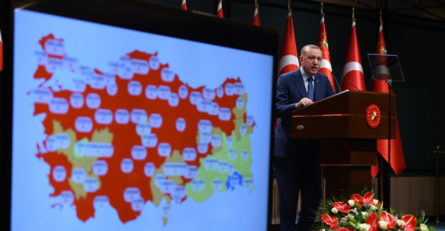 Cumhurbaşkanı Recep Tayyip Erdoğan, “Çok yüksek riskli grubu teşkil eden kırmızı kategorideki illerimizin sayısı maalesef nüfusumuzun yüzde 80’ini teşkil eden 58 şehre ulaşmıştır” dedi.