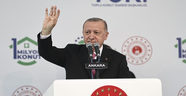 Cumhurbaşkanı Erdoğan, "Bugüne kadar TOKİ vasıtasıyla 1 milyon 100 bin konut ve iş yeri ile stadyum, hastane, okul, yurt, spor salonu gibi 24 binin üzerinde tesisi ülkemize kazandırdık." dedi.
