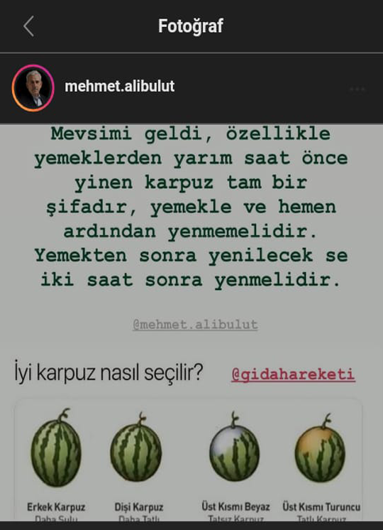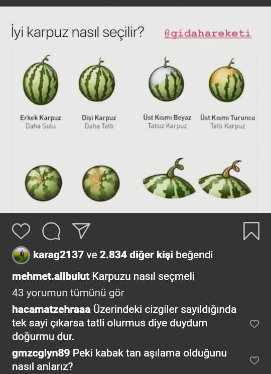 Bulut, iyi karpuzun özelliklerini içeren görseli okurlarıyla paylaştı. Daha tatlı ve sulu karpuzun özelliklerine de değinen Bulut'un paylaşımı kısa sürede birçok beğeni ve yorum aldı.