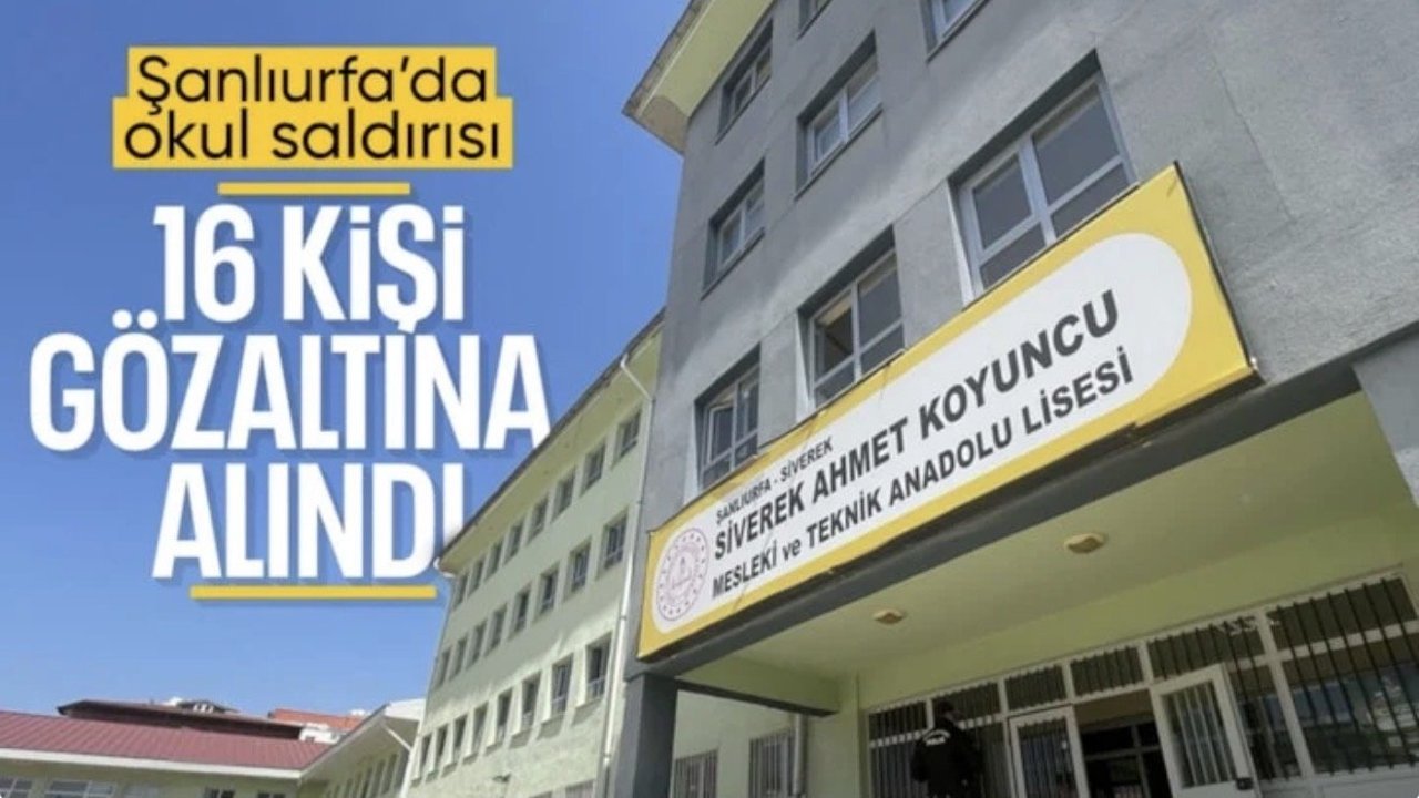 Emniyet Genel Müdürlüğü (EGM), Şanlıurfa'nın Siverek ilçesinde bulunan Ahmet Koyuncu Mesleki ve Teknik Anadolu Lisesi'ndeki silahlı saldırıya ilişkin 16 şüphelinin gözaltına alındığını bildirdi.