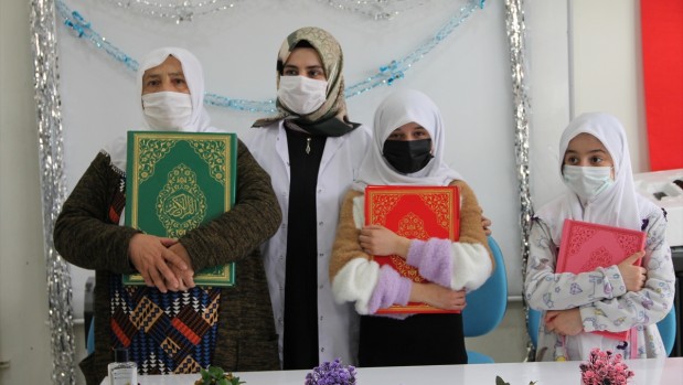 Tunç ile Kur'an-ı Kerim okumayı öğrenen 13 yaşındaki Aynur Tonğ ve 10 yaşındaki Mina Ecrin Öter için Gençlik Merkezinde tören yapıldı.