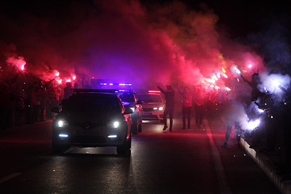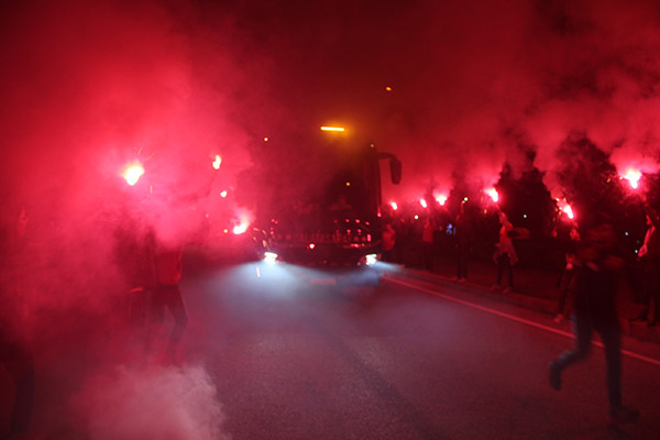 Türk Hava Yolları’na ait özel uçakla akşam saatlerinde Malatya’ya gelen Galatasaray kafilesini havaalanında taraftarlar karşıladı. Polis ekiplerinin geniş güvenlik önlemi aldığı alanda, taraftaralar Kulüp Başkanı Burak Elmas ve Teknik Direktör Fatih Terim’e çiçek takdim etti. Futbolcular da kendilerini karşılamaya gelen taraftarların formalarını imzalarken, havaalanı dışında da çok sayıda taraftar takım otobüsünü meşalelerle karşıladı. Tezahüratlar eşliğinde havaalanından çıkış yapan sarı-kırmızıları taşıyan takım otobüsü daha sonra futbolcuların kamp yapacağı otele geçti.