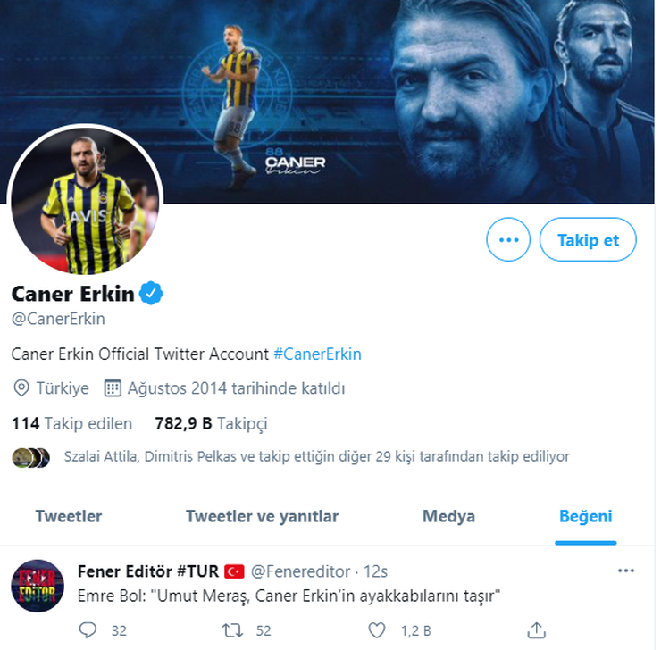 EURO 2020'nin açılış maçında A Milli Takımımız, İtalya'ya 3-0'lık skorla mağlup oldu. Mücadelenin ardından Fenerbahçe forması giyen tecrübeli sol bek Caner Erkin'in sosyal medya beğenisi gündem oldu. 32 yaşındaki futbolcunun beğendiği tweette, "Umut Meraş, Caner Erkin’in ayakkabılarını taşır." ifadelerine yer verilmişti.