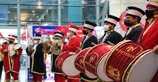 Azerbaycan’da düzenlenen Aerobik Cimnastik Dünya Şampiyonası’nda altın madalya kazanan Ayşe Begüm Onbaşı, Ankara Esenboğa Havalimanı’nda mehter takımı tarafından karşılandı.