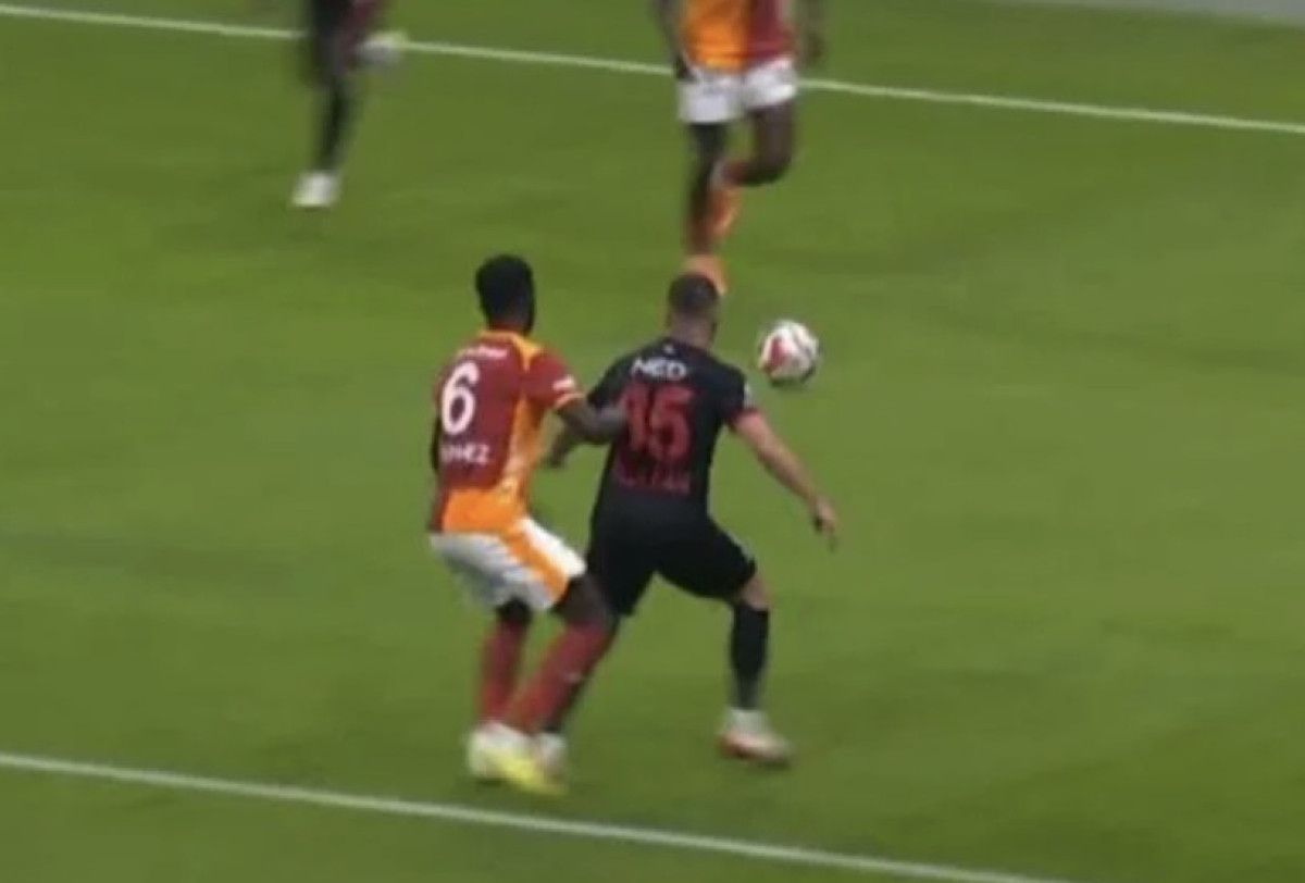 Deniz Çoban: "Avantajı oynattın, Thalisson gidip çizgiden topu çıkardı. O yüzden oyun kuralları zaten oynatma diyor. Bu seviyede atlanmamalı. İkinci sarı kart doğru. Oyuncu kontrolsüz şekilde kayıyor. Galatasaraylı oyuncu kanada pas veriyor, koşu yapıyor ve oyuncu düşürülüyor. Net.