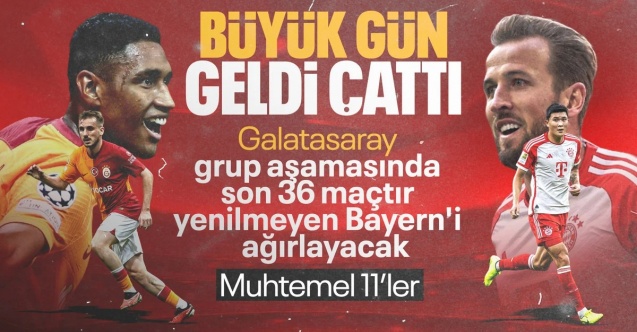 Temsilcimiz Galatasaray, bugün Şampiyonlar Ligi grup aşamasında 36 maçtır yenilmeyen Bayern Münih karşısında mucize arayacak.