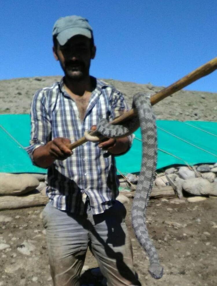 Tunceli’de tek ısırığı ile ölüme götüren 2 metre boyundaki engerek, kuzu ağılına girdi. Sürü sahibi ilk kez gördüğü koca engerek yılanını sopa yardımıyla ağıldan çıkararak doğal ortamına bıraktı.
