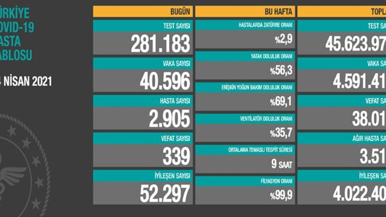 Sağlık Bakanlığı, son 24 saatte 339 kişinin korona virüsten hayatını kaybettiğini, 40 bin 596 yeni vaka sayısının olduğunu açıkladı.