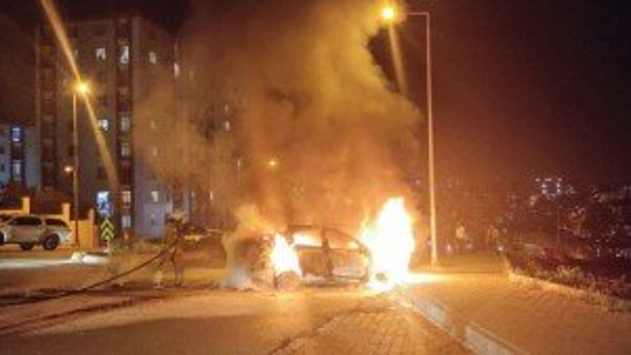 - Yanan otomobilin itfaiye ekipleri tarafından söndürme çalışmaları