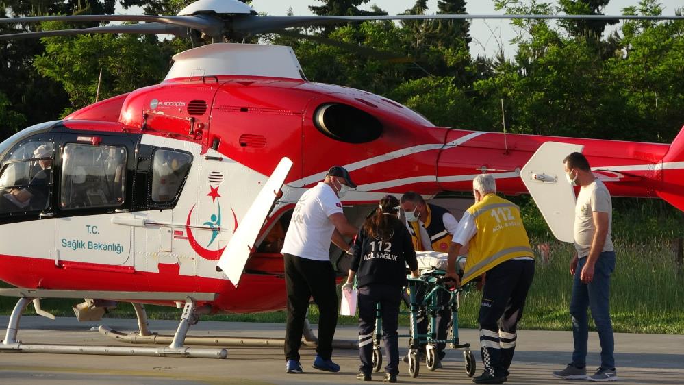 Ağaçtan düşen çiftçinin imdadına helikopter yetişti