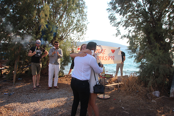 İlçede otopark işletmeciliği yapan 26 yaşındaki Erol Kurutaş ile ailesinin tekne işi uğraşan 23 yaşındaki Dilara Özcan, yaklaşık bir yıl önce arkadaş ortamında tanıştı. Arkadaşlıkları kısa sürede aşka dönüştü. Erol Kurutaş, arkadaşlarının da desteğiyle sevgilisi için sürpriz evlilik teklifi planladı. Tavşanburnu mevkisindeki tersanede arkadaşları hazırlıkları yapıp çifti beklemeye başladı. Kurutaş, kız arkadaşı Dilara Özcan’ı ‘askerden komutanım geldi, onun yanına gidelim’ bahanesiyle hazırlığın yapıldığı bölgeye getirdi. Çift, tersaneye gelince arkadaşları, müzik ve meşaleler eşliğinde, üzerinde “Benimle Evlenir Misin” yazılı bir pankartla karşılama yaptı.