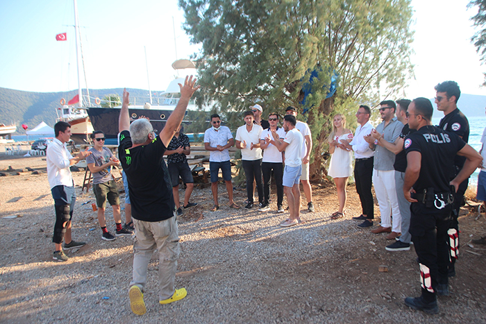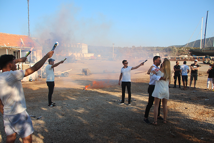Muğla’nın Bodrum ilçesinde bir genç, tersanede kız arkadaşına sürpriz evlilik teklifi yaptı. Teklifine ‘evet’ yanıtını alan genç, büyük mutluluk yaşadı.
