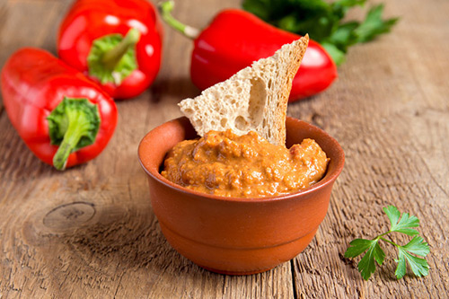 Malzemelerimiz; 1 su bardağı haşlanmış nohut (konserve de kullanabilirsiniz), 1 çay bardağı tahin, yarım limonun suyu, tuz, 1 adet közlenmiş kırmızı dolmalık biber (konserve oldukça kolaylık sağlayacaktır), 1 diş sarımsak ve tuz. Hepsini bir kabın içinde iyice birbirine karışıp pürüzsüz hale gelene kadar karıştırın. Dileğiniz sebzeleri jülyen doğrayın ve humusla birlikte servis edin.